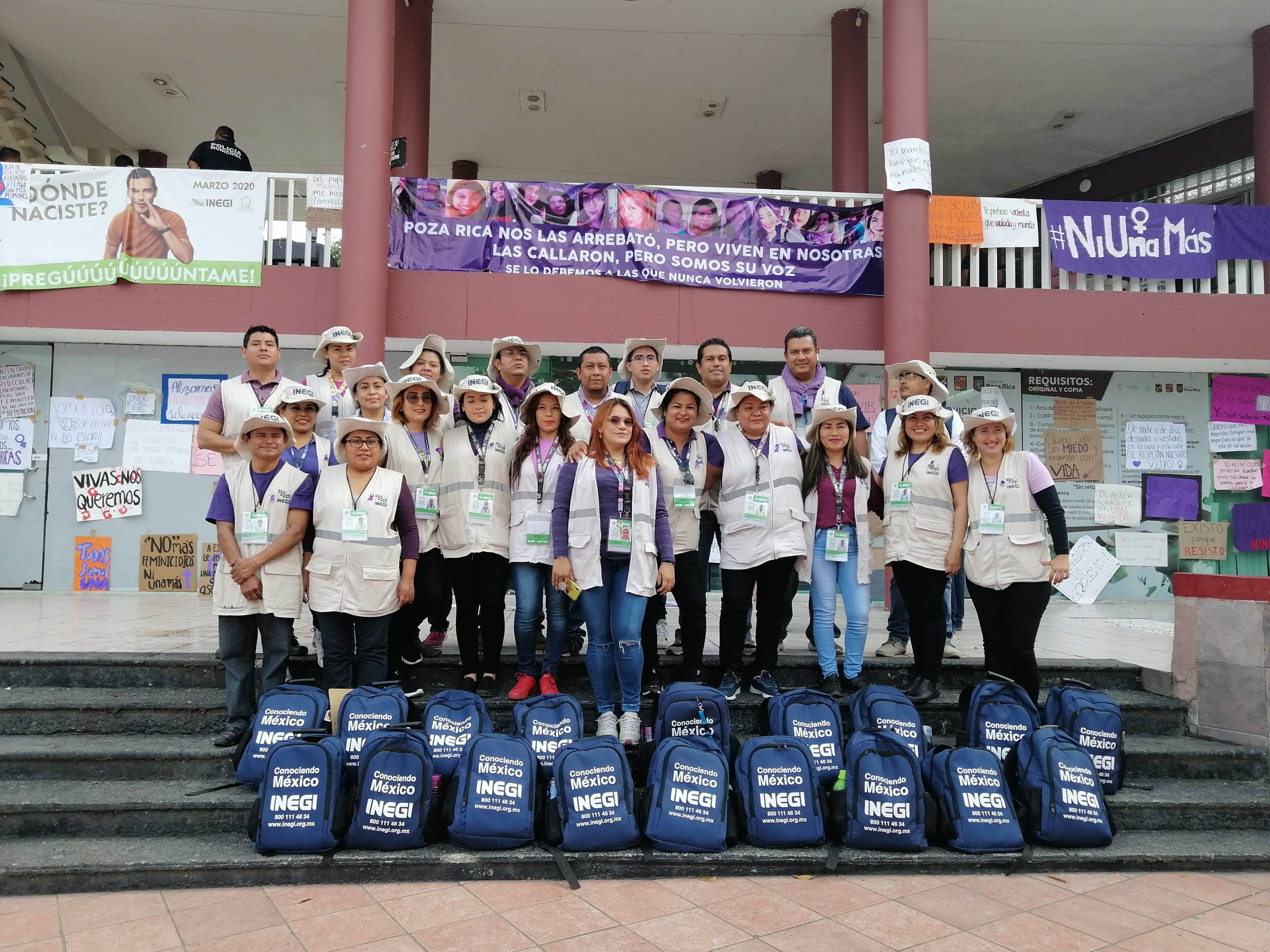Poza Rica, Ver.- Trabajadoras del Instituto Nacional de Estadística y Geografía (INEGI) se unieron con la protesta nacional de mujeres en el marco de la celebración del Día Internacional de la mujer y pedir a la primera autoridad más seguridad para las mujeres trabajadoras.