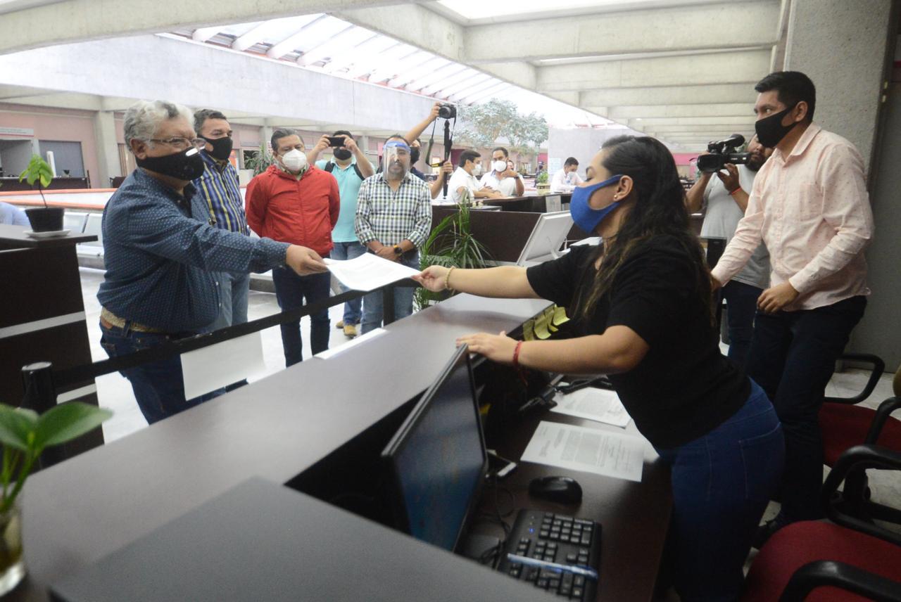 Este viernes, acompañado de los dirigentes del PAN, Joaquín Guzmán Avilés, del PRD, Jesús Alberto Velázquez Flores, y del diputado local, Omar Miranda Romero, acudió a las instalaciones del Congreso Local para entregar un documento en el que requieren copias certificadas de la documentación recibida del 12 de mayo al 12 de junio.