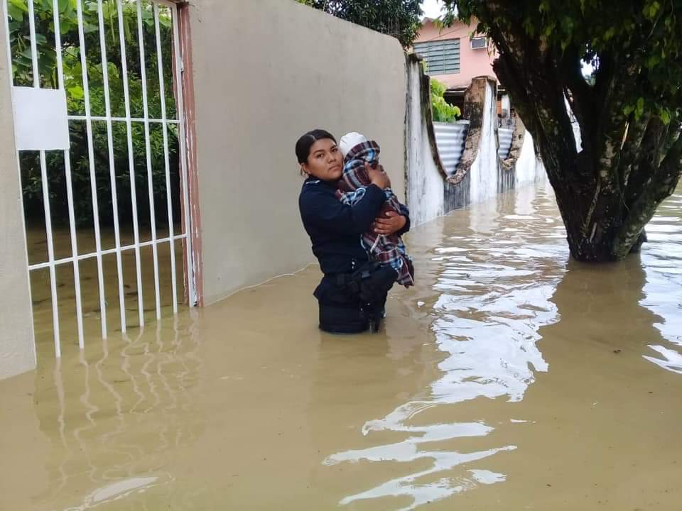 Los uniformados, han apoyado a la población a salir de sus viviendas, mientras son resguardados en dos albergues ubicados en las escuelas Amado Nervo y José Olmero González.