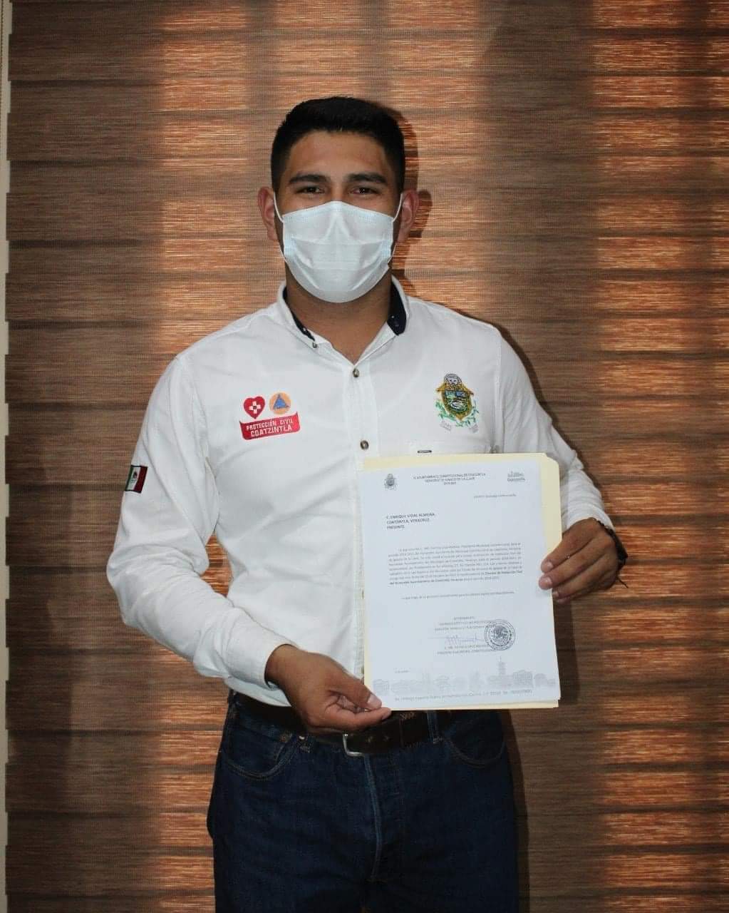 El Síndico Telésforo Munguía hizo entrega de nombramiento como nuevo director de Protección Civil a Enrique Vidal Almora quien a partir de esta fecha asume la responsabilidad encomendada por el cabildo.