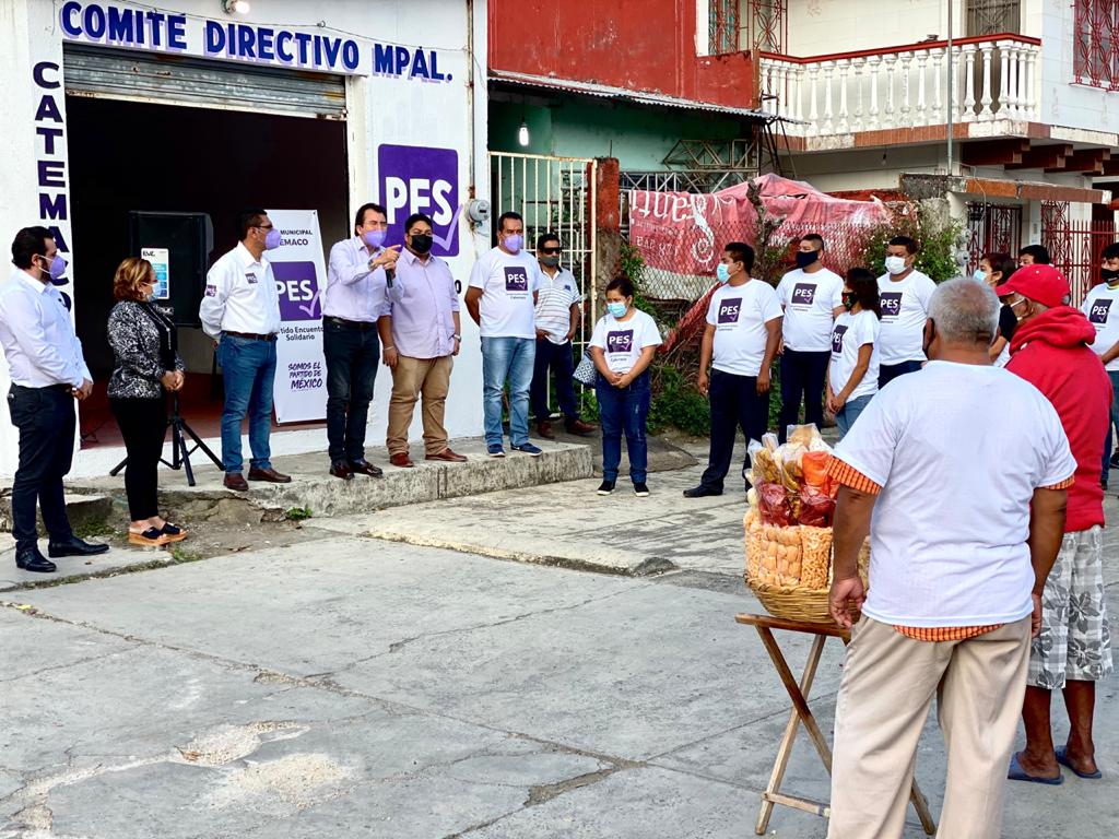 «Hay mucha gente que cree en nosotros y no les vamos a fallar», aseguró Sandino Santos durante un evento que también sirvió para inaugurar las oficinas del Comité Municipal del PES en Catemaco, ubicado en la calle Vicente Guerrero esquina con Ignacio Allende, en el Barrio San Miguel, de Catemaco Veracruz