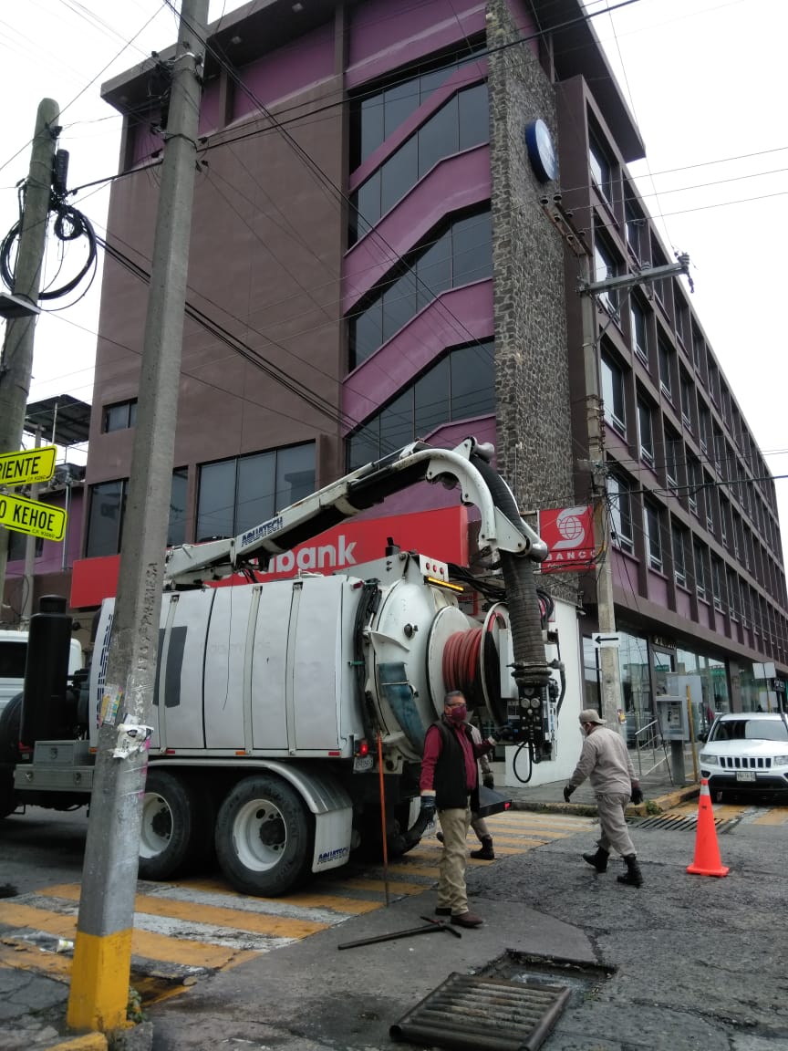 Poza Rica Ver.- Trabajadores del departamento de Drenaje y Alcantarillado, quienes acudieron al llamado de comerciantes y empresarios del primer cuadro de la ciudad, realizaron limpieza de varios drenajes que se encontraban azolvados en el primer cuadro de la ciudad.