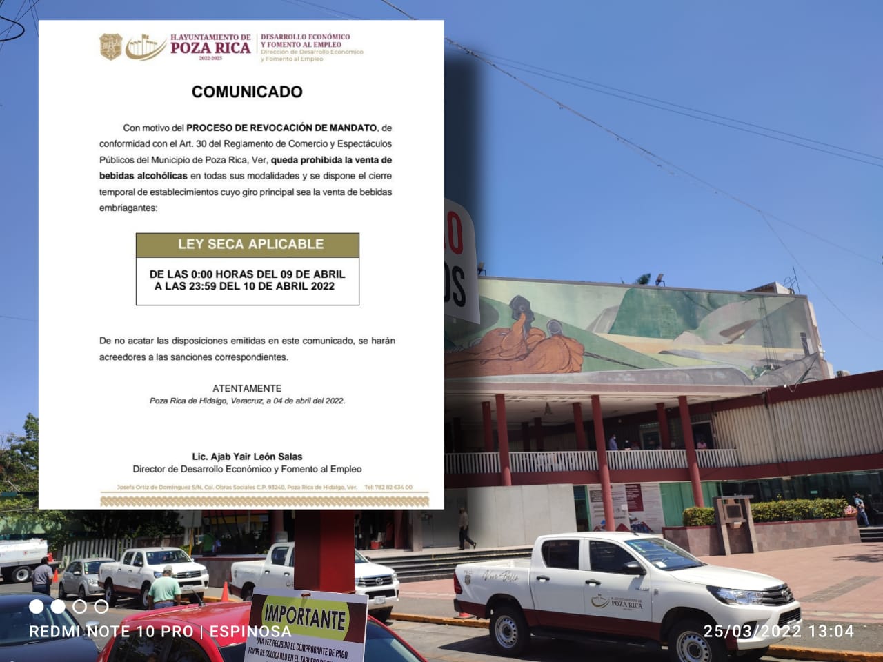 Por revocación de mandato Ordenan “ley seca” para el 09 y 10 de abril en Poza Rica.