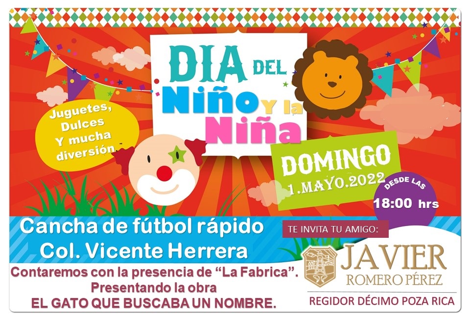 El evento se realizará el próximo domingo primero de mayo en la cancha de fútbol rápido de la colonia Vicente Herrera, en punto de las 18:00 horas, por lo que invitó a los padres de familia para que lleven a sus hijos para que puedan disfrutar de los espectáculos que se tiene preparado para los reyes del hogar.