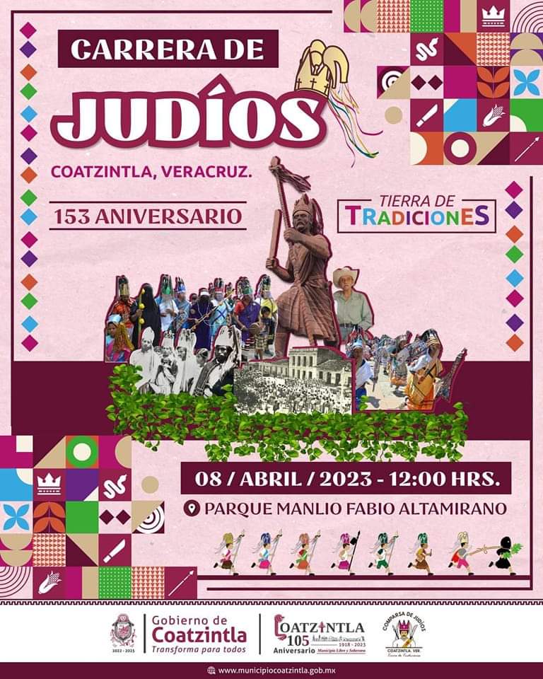 El Coordinador de la Comparsa de Judíos Coatzintla Ver C. Moisés Guerra confirmó a toda la población que mañana a las 12 del día como estaba programado se realizará “la Gran Carrera Tradicional con duración de 2 horas en el parque Manlio Fabio Altamirano porque el compromiso es muy grande y tenemos que cumplirlo”.