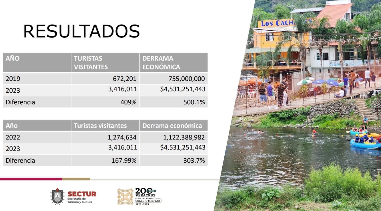 En comparación con 2019, este 2023 registró cinco veces más ingresos y cuatro más en afluencia; mientras que el año pasado fue superado 303% en derrama y 168 en recepción de visitantes, lo que permitió a Veracruz recuperar el potencial turístico nacional y mantenerse entre el quinto y sexto lugar del país en materia de captación.